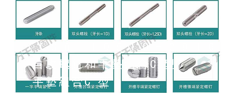 T型槽螺母 T-slot nuts 單頭螺柱 Single end studs 地腳螺栓 Masonry bolts 帶槽圓螺母 Slotted round nuts 端面帶孔圓螺母 Round nuts with drilled holes in one face 開(kāi)槽平端緊定螺釘 Slotted set screws with flat